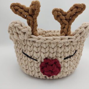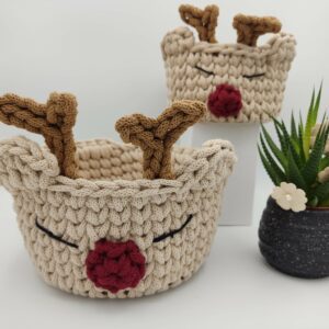 - Diese putzigen Rentier-Körbchen gibt es in unterschiedlichen Größen und jedes einzelne habe ich mit viel Liebe und Sorgfalt selbst gehäkelt.