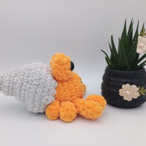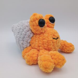- Dieser Krebs ist „handmade by Amaya“ nach Design / Anleitung „Plush Horatio the Hermit Crab“ von Theresa’s Crochet Shop.