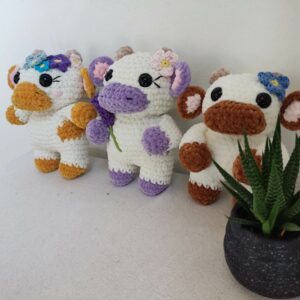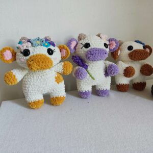 Fantasievolle Kühe aus kuschelig weicher Chenille-Wolle.  Mit Liebe und Sorgfalt selbstgehäkelt.
