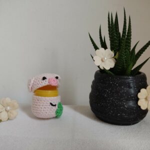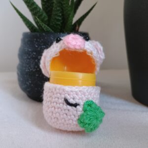 - Dieses Ü-Ei-Tier ist „handmade by Amaya“ nach Design / Anleitung aus dem Buch „Überraschungs-HäkelEi: Häkeln, schenken, staunen“ von Melanie Czerny