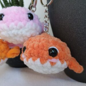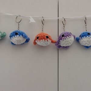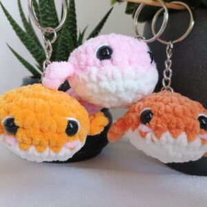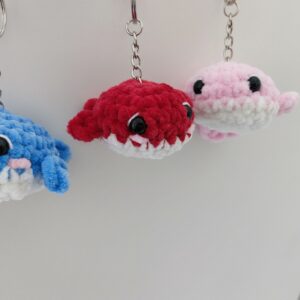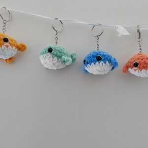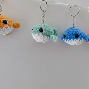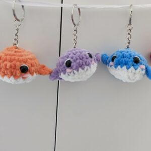 Farbenfrohe Schlüsselanhänger-Wale aus kuschelig weicher Chenille-Wolle.  Mit Liebe und Sorgfalt selbstgehäkelt.